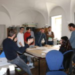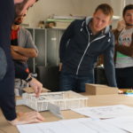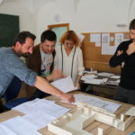 Jede Gruppe präsentiert ihren eigenen Entwurf und gemeinsam werden Qualitäten und Schwächen hinsichtlich Material, Komplexität in der Herstellung, Kosten etc. desselben erörtert. Die räumlichen und atmosphärischen Qualitäten der einzelnen Entwürfe spielen in der Diskussion eine besondere Rolle. // Each team presents its design to the rest of the group and together we discuss about the qualities and weaknesses in materials, complexity of construction, costs etc. The spatial and atmospheric qualities of the individual designs lay a special role in the discussion.