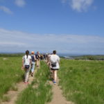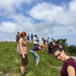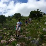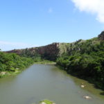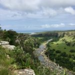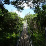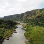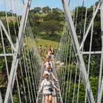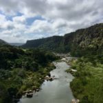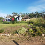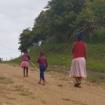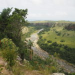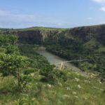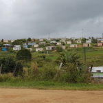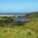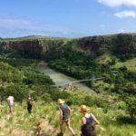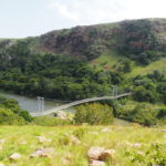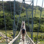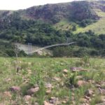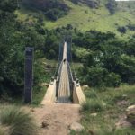 Neben der Besichtigung unserer Baustelle, erkunden wir die Umgebung und das Dorf Mzamba, in dem wir in den nächsten Wochen einen Großteil unserer Zeit verbringen werden. Vorbei am Schulgelände und an kleinen Häusern, umgeben von großzügigen Gärten, steigen wir eine steile Schlucht zum Mzamba-Fluss hinab. Dort befindet sich seit gut zwei Jahren eine Hängebrücke, die den Bewohnern des Pondolands einen sicheren Weg über den Fluss ermöglicht. Kaum vorstellbar, dass ihr Weg zuvor durch den reißenden Fluss führte, um lebensnotwendige Infrastruktur wie Schulen, Gesundheitsversorgung oder Lebensmittelgeschäfte nutzen zu können. // Apart from visiting our construction site, we explore the surrounding area and the village of Mzamba, where we will spend much of our time over the next few weeks. Passing the school grounds and small houses, surrounded by spacious gardens, we descend a steep ravine to the Mzamba River. There is a suspension bridge for almost two years now, which provides the inhabitants of the Pondoland a safe path across the river. It is hard to imagine that they used to walk through the rushing river to reach infrastructure such as schools, health care or grocery stores.