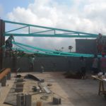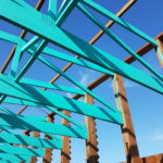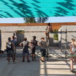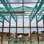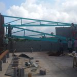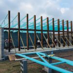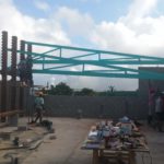 Heute werden die türkisen Fachwerkträger der „Hall“ montiert! Wunderbares Gefühl! // Today, the turquoise trusses of the hall are mounted! Wonderful feeling!