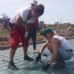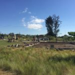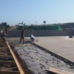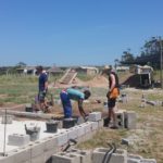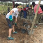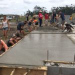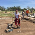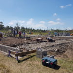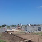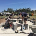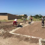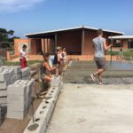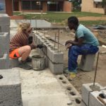 Unsere Tage beginnen um 06:45 Uhr mit einem ausgewogenen Frühstück, dann Morgenhygiene inklusive Sonnenschutzmilch und rein in die Arbeitshose! Der Weg zur Baustelle wird mit dem Auto zurückgelegt, cirka 20 Minuten ohne Verkehrschaos. Den Linksverkehr meistern wir gut. Pünktlich um 08:00 Uhr treffen wir uns in unserer Bauhütte am Schulgelände. In einer gemeinsamen Baubesprechung werden Tagesziele und Aufgaben formuliert und Arbeitsteams gebildet. Unsere ersten Aufgaben bestehen aus Mauern, Betonieren, Schalungsbau, Beton und Mörtel mischen und feinen Erdarbeiten. Mit einer Mittagspause endet unser Arbeitstag zwischen 17 und 18 Uhr, abhängig von den Aufgaben. // Our days start at 06:45 with a balanced breakfast, then morning routine including sun screen lotion and into our working pants! The route to the construction site is covered by car, around 20 minutes of driving without traffic chaos. We get along well with the left-hand traffic. On time at 08:00 we meet in our cottage on the school grounds. In a construction meeting we formulate daily goals and tasks and we form working teams. Our first tasks consist of brick laying, concreting, formwork, mixing concrete and mortar and earthworks. With one lunchbreak our working day ends between 5 and 6 o’clock depending on how we get along with our tasks.