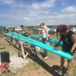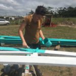 19.02.2018 Streichen geht weiter! In den Fotos verraten wir euch endlich auch die Farbe der Fachwerkträger….türkis, türkis, türkis! // Painting is going ahead! We finally reveal the color of the trusses in the pictures….turquoise, turquoise, turquoise!